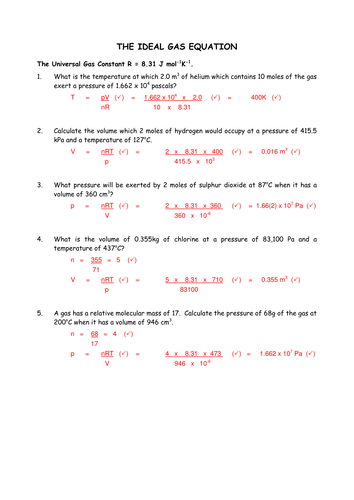 The last question of a worksheet on the ideal gas equation is confusing me a bit. So let's apply our ideal. The ideal gas equation is a valuable tool that can give a very good approximation of gases at high temperatures and low pressures. Let us consider a mole of gas contains in a cylinder fitted with a frictionless piston. By rearranging the ideal gas law (ideal gas equation) pv=nrt, it can be used to calculate the pressure (p), volume (v), temperature (t) or amount (n) of gas worksheet wizards to make printable worksheets or tests.